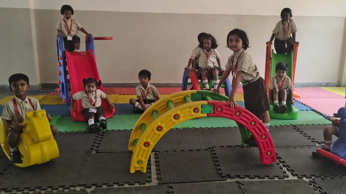 The spacious classrooms and club activities at Rainbow Eng School, Abbigere helps to unleash the creative streak in students and the soothing ambience makes it a much sought after room